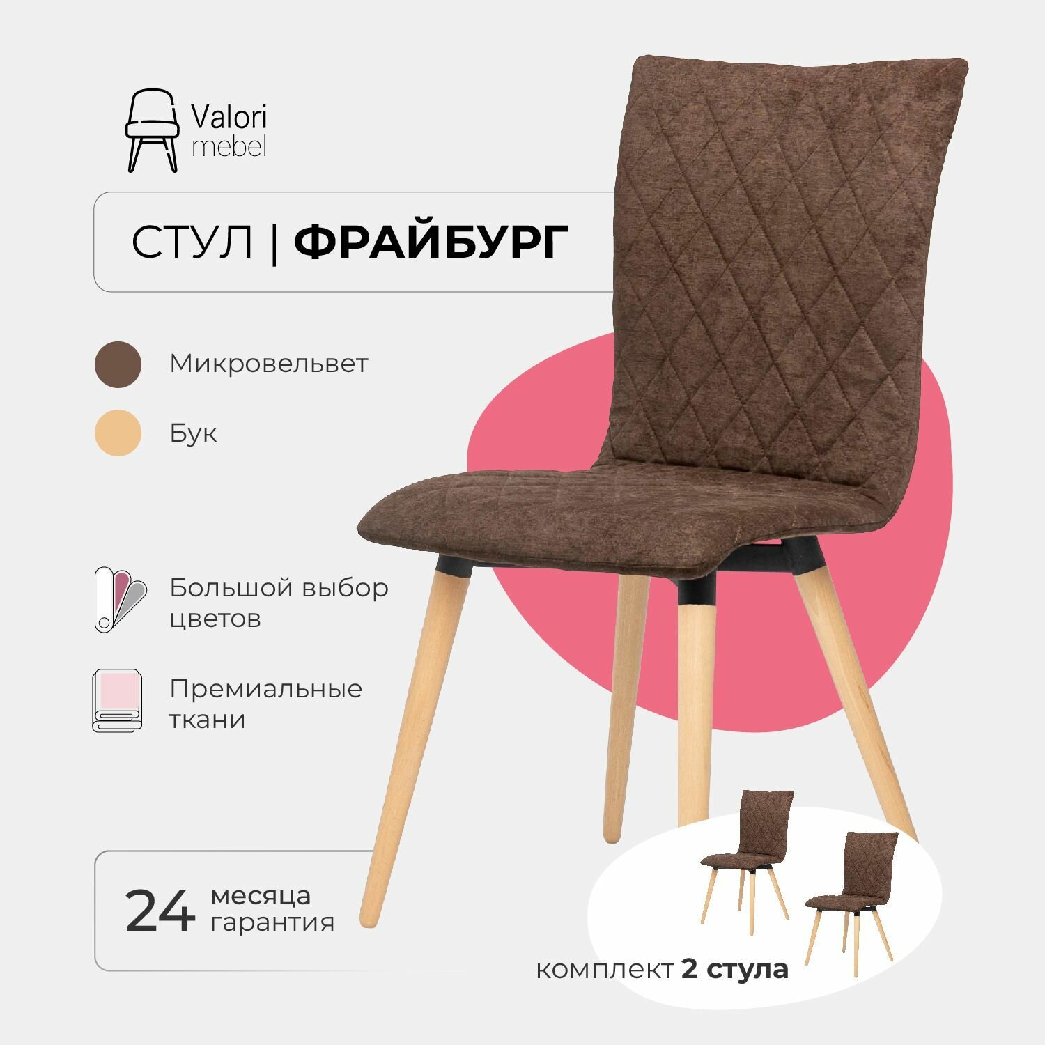 Купить Стулья для кухни комплект 2 шт Фрайбург Valori для кухни, для гостиной, велюр коричневый, массив дерева — бук/бесцветный лак с доставкой по всей России.