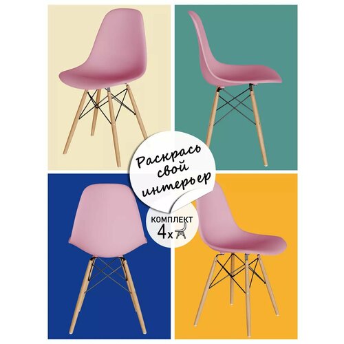 Купить Стулья для кухни комплект 4 шт со спинкой СтулБержи EAMES DSW, деревянные ножки, розовый, пластиковый с доставкой по всей России. Стулья для кухни комплект 4 шт со спинкой СтулБержи EAMES DSW, деревянные ножки, розовый, пластиковый: сравнение цен, характеристики, фото, актуальное наличие и цены.