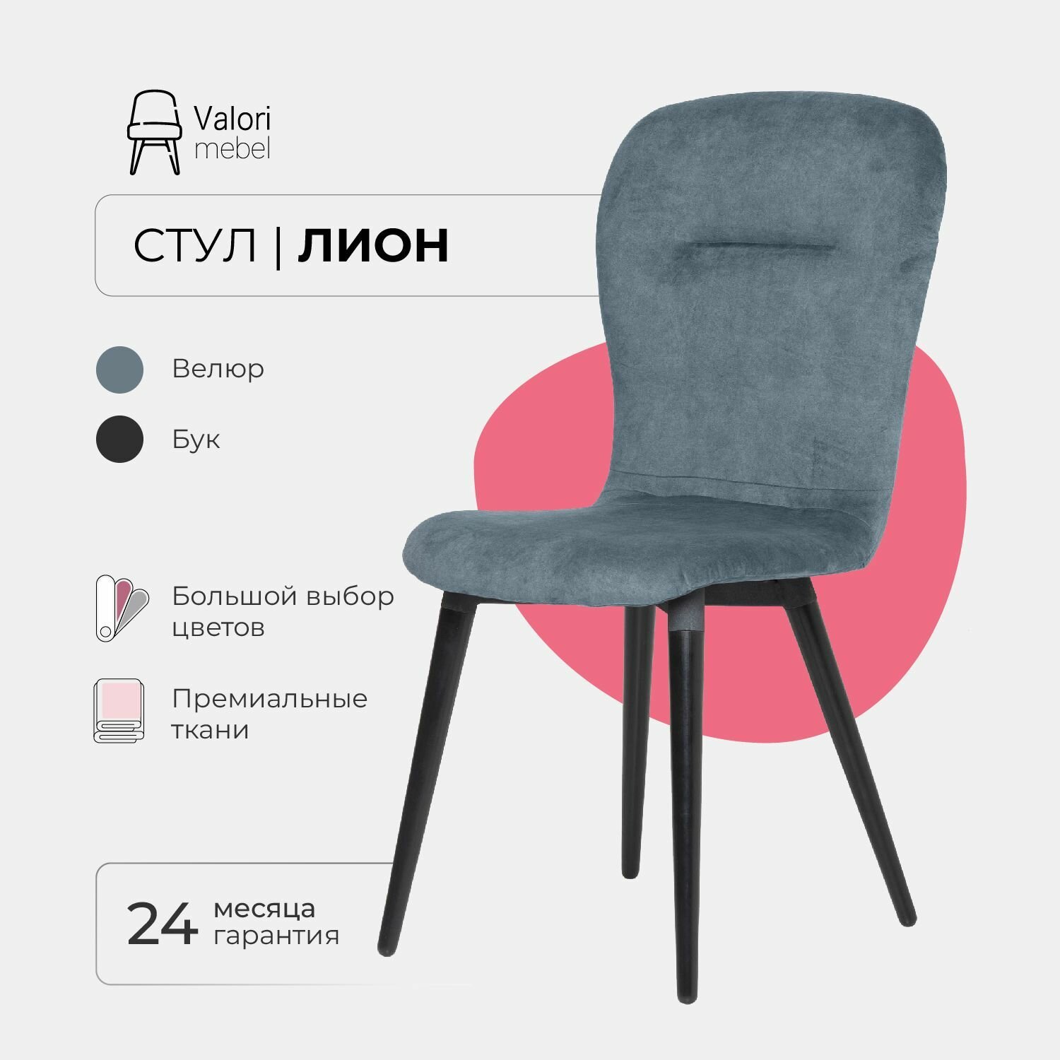 Стулья для кухни Лион Valori, стул кухонный, велюр свинцово-синий, массив дерева — бук/черный лак, 1 шт.: сравнение цен, характеристики, фото, актуальное наличие и цены.