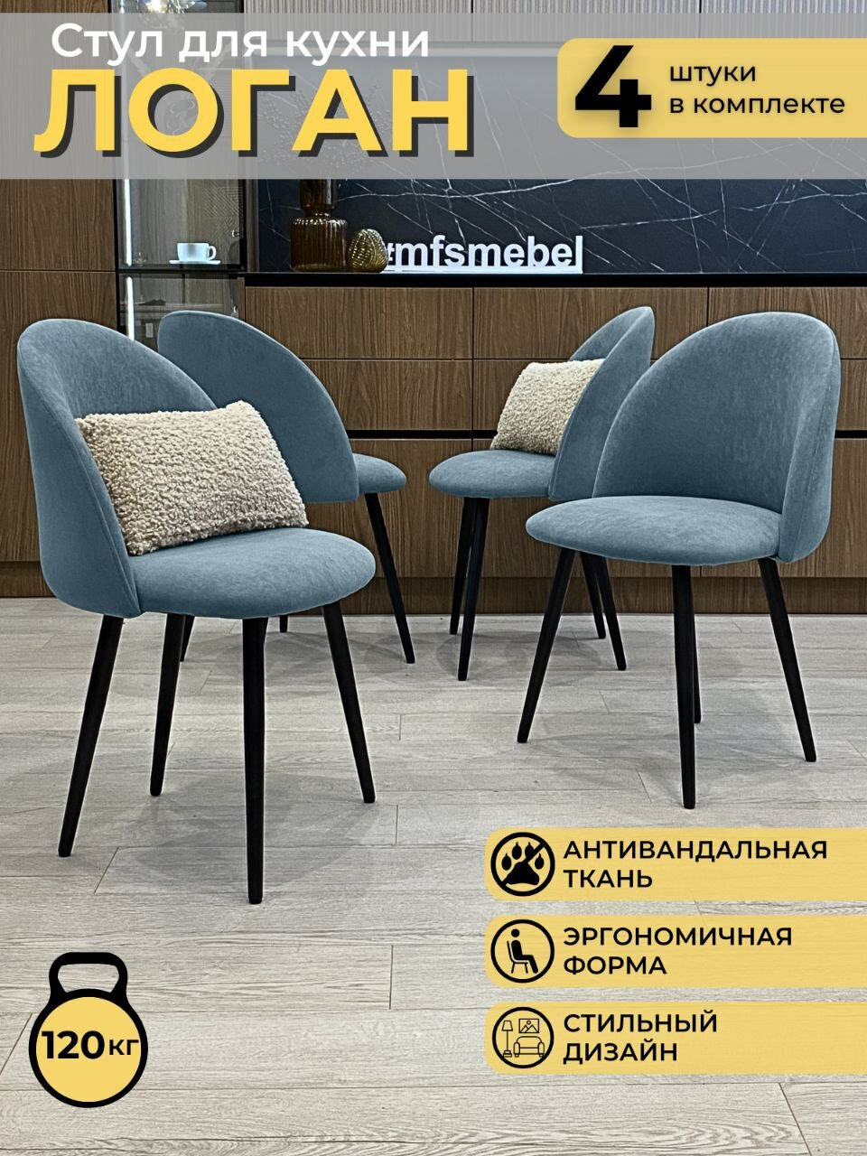 Стулья для кухни Логан в светло-голубом цвете, 4 штуки, велюровые: сравнение цен, характеристики, фото, актуальное наличие и цены.