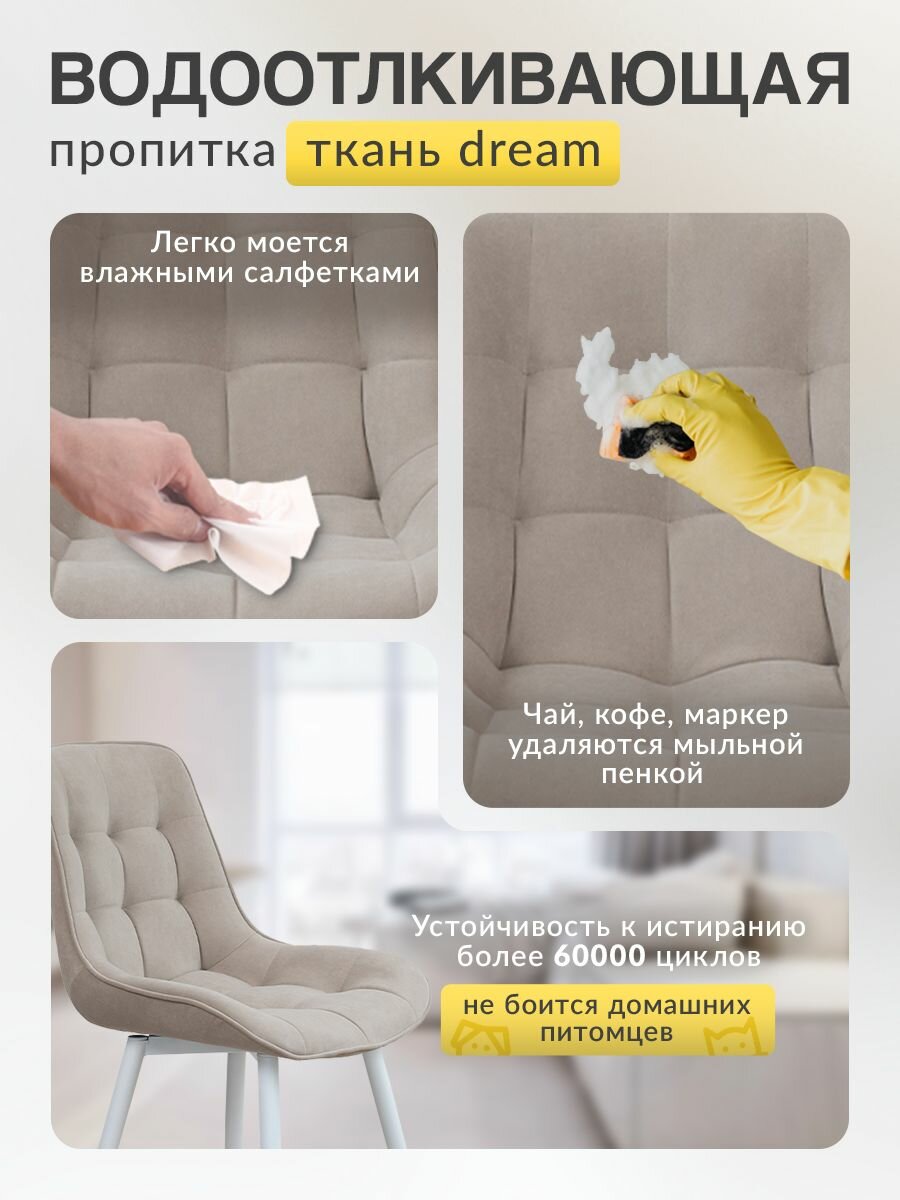 Обивка из антивандальной ткани с водоотталкивающей пропиткой гарантирует долговечность и сохранность внешнего вида даже в самых активных интерьерах. Это особенно важно, если в доме есть маленькие дети или домашние животные. Легкость чистки — всего лишь протрите стул влажной салфеткой или губкой с мыльной пеной, и он вновь станет как новеньким.