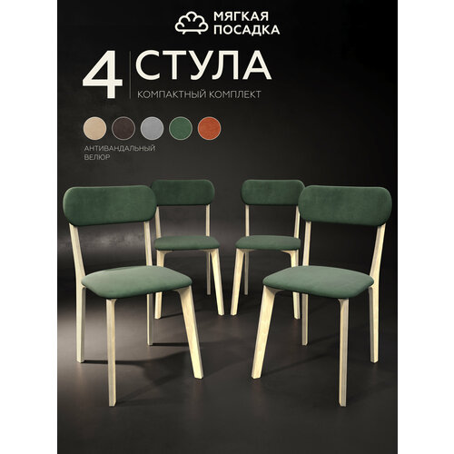 Купить Стулья для кухни мягкая посадка 4 шт деревянные мягкие со спинкой для обеденной зоны, велюр зеленый + бесцветное масло с доставкой по всей России. Стулья для кухни мягкая посадка 4 шт деревянные мягкие со спинкой для обеденной зоны, велюр зеленый + бесцветное масло: сравнение цен, характеристики, фото, актуальное наличие и цены.