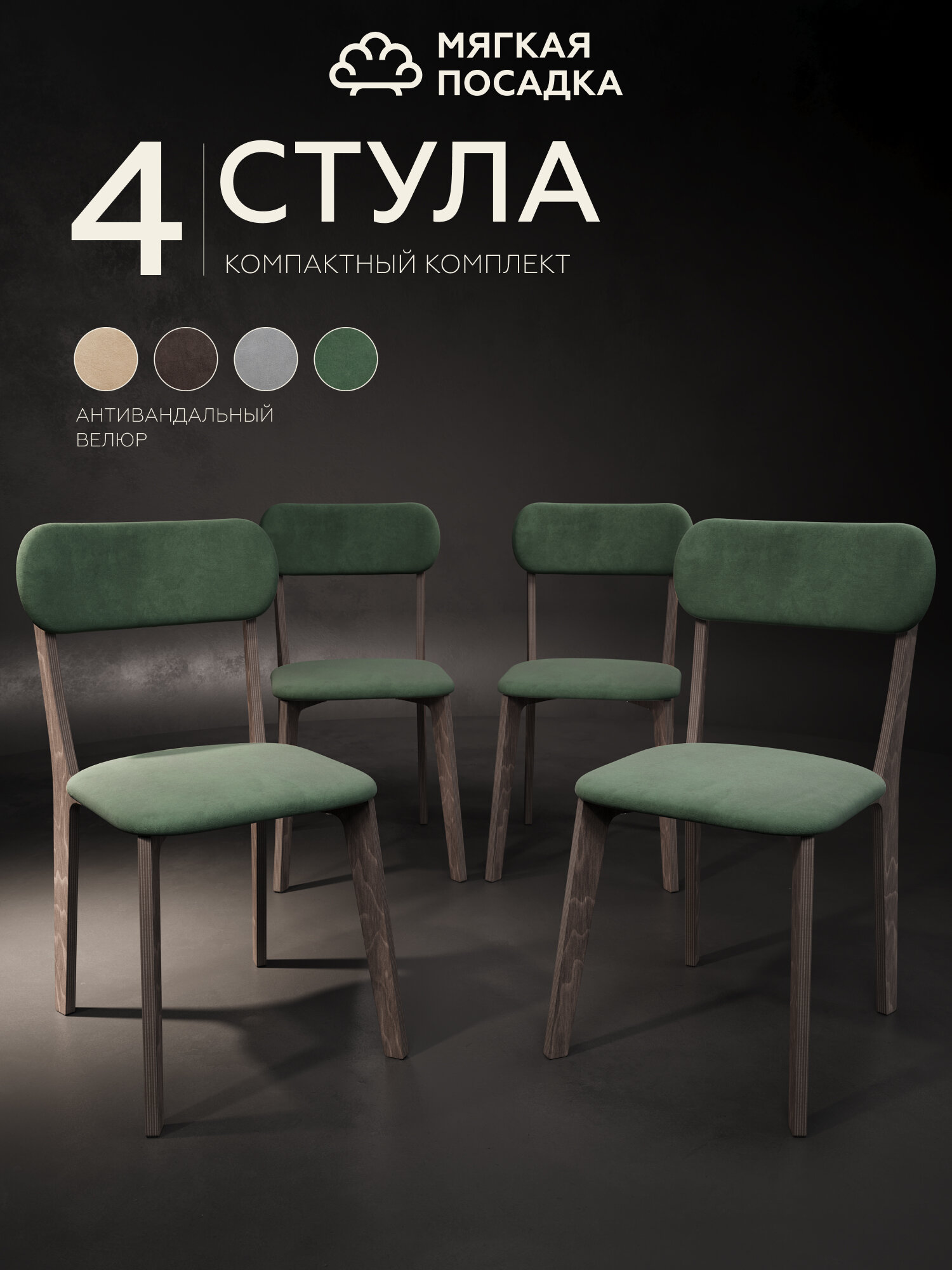 Купить Стулья для кухни мягкая посадка комплект 4 шт деревянные мягкие со спинкой для обеденной зоны, велюр зеленый с доставкой по всей России.
