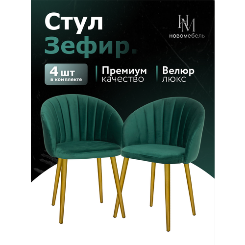 Стулья для кухни мягкие со спинкой комплект 4 шт НОВОМЕБЕЛЬ Зефир велюр изумрудный на золотых ножках для гостиной: сравнение цен, характеристики, фото, актуальное наличие и цены.