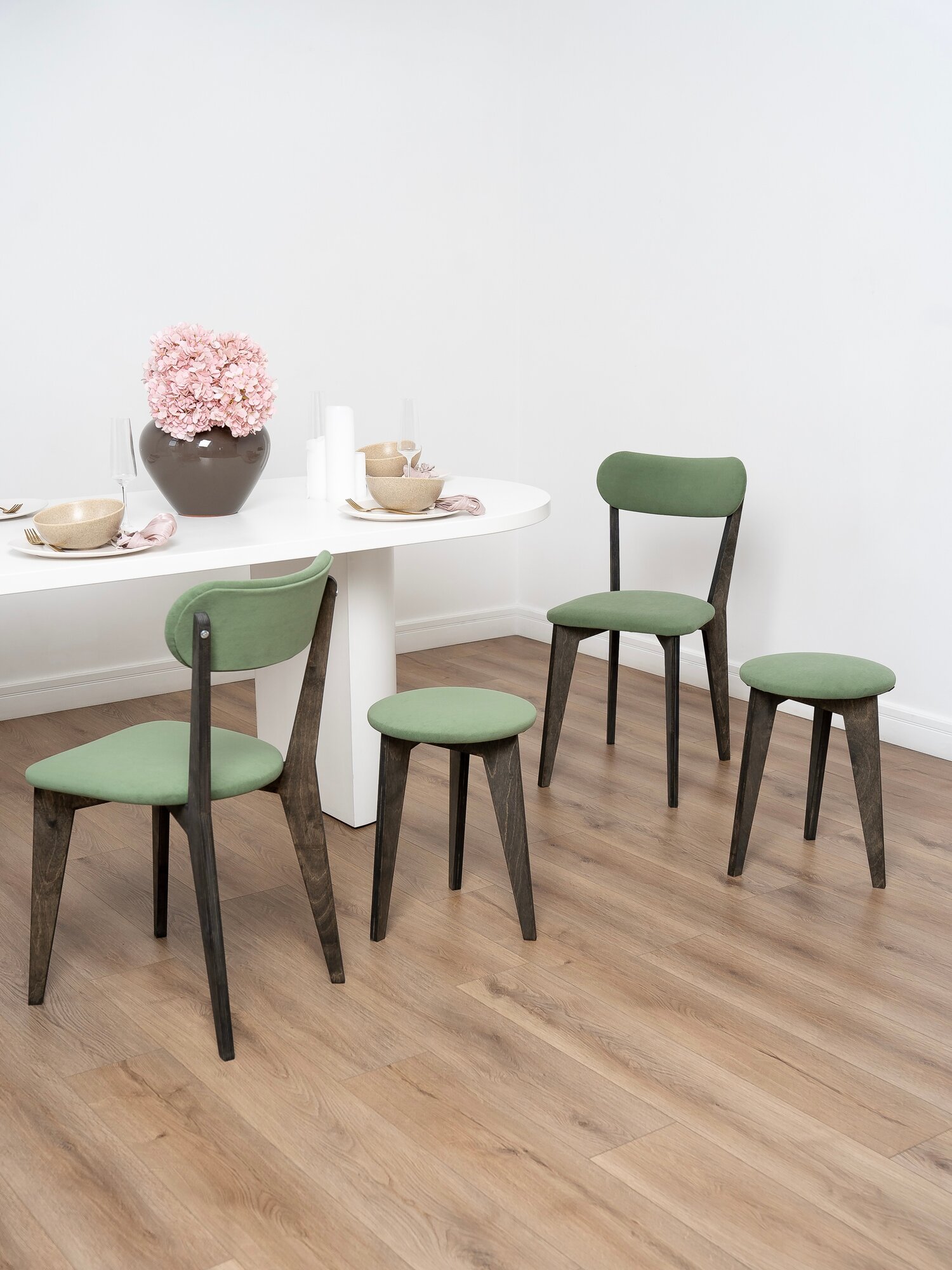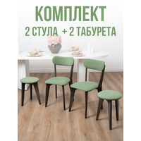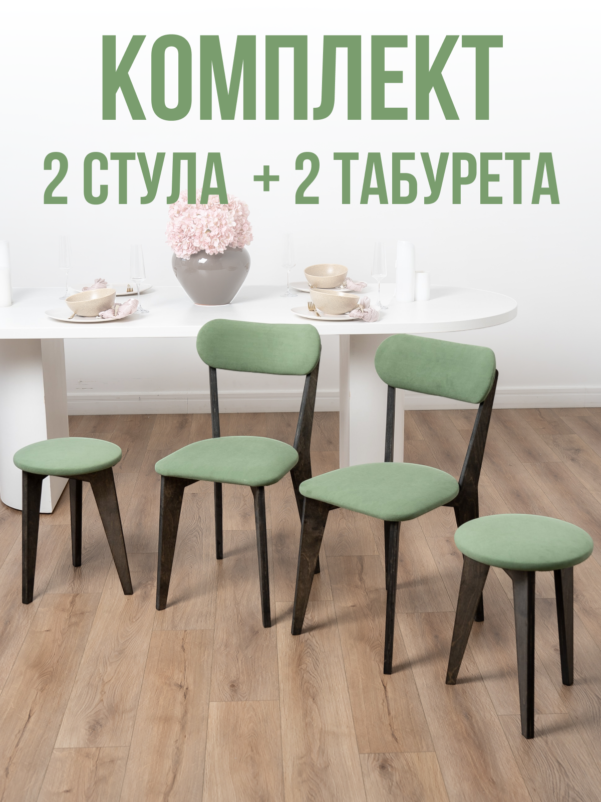 Купить Стулья для кухни SANYAK 2 шт мягкие со спинкой и табуретки 2 шт комплект для обеденной зоны, велюр, Фисташковый с доставкой по всей России.
