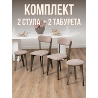 Купить Стулья для кухни SANYAK 2 шт мягкие со спинкой и табуретки 2 шт комплект для обеденной зоны, велюр, Капучино с доставкой по всей России.