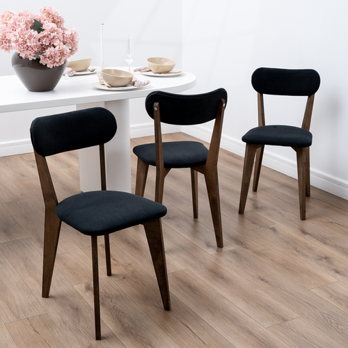 Стулья для кухни SANYAK комплект 3 шт мягкие со спинкой для обеденной зоны, велюр, Черный: сравнение цен, характеристики, фото, актуальное наличие и цены.
