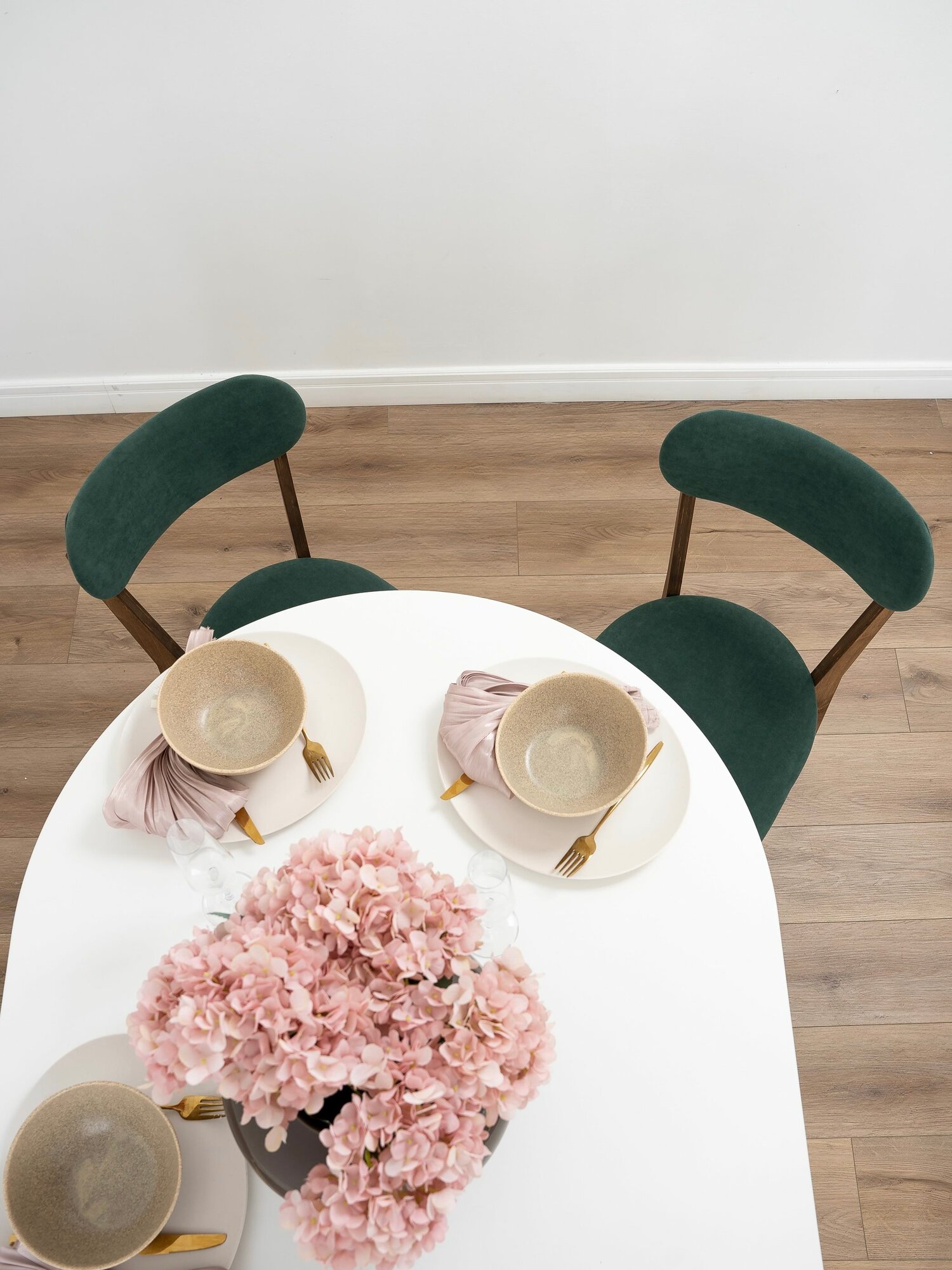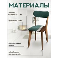 Стулья для кухни SANYAK комплект 4 шт деревянные мягкие со спинкой для обеденной зоны, велюр, Зеленый