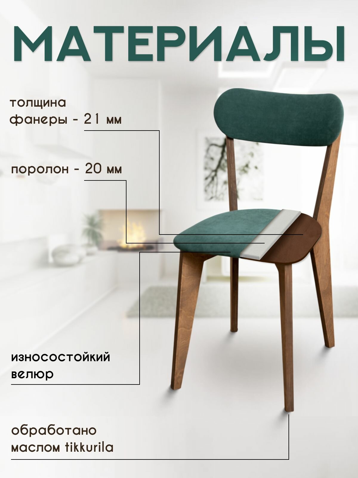 Стулья для кухни SANYAK комплект 4 шт деревянные мягкие со спинкой для обеденной зоны, велюр, Зеленый: сравнение цен, характеристики, фото, актуальное наличие и цены.