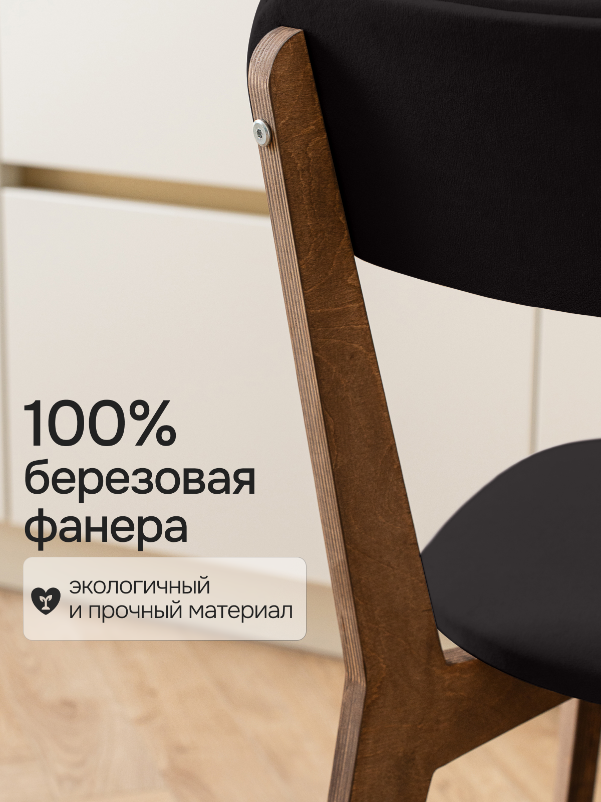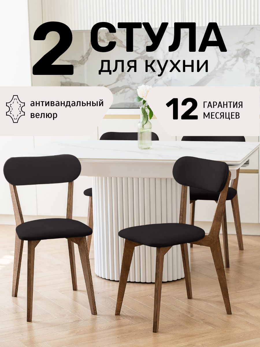 Купить Стулья для кухни SAYMAN 2 шт, деревянные со спинкой, Черный велюр с доставкой по всей России.