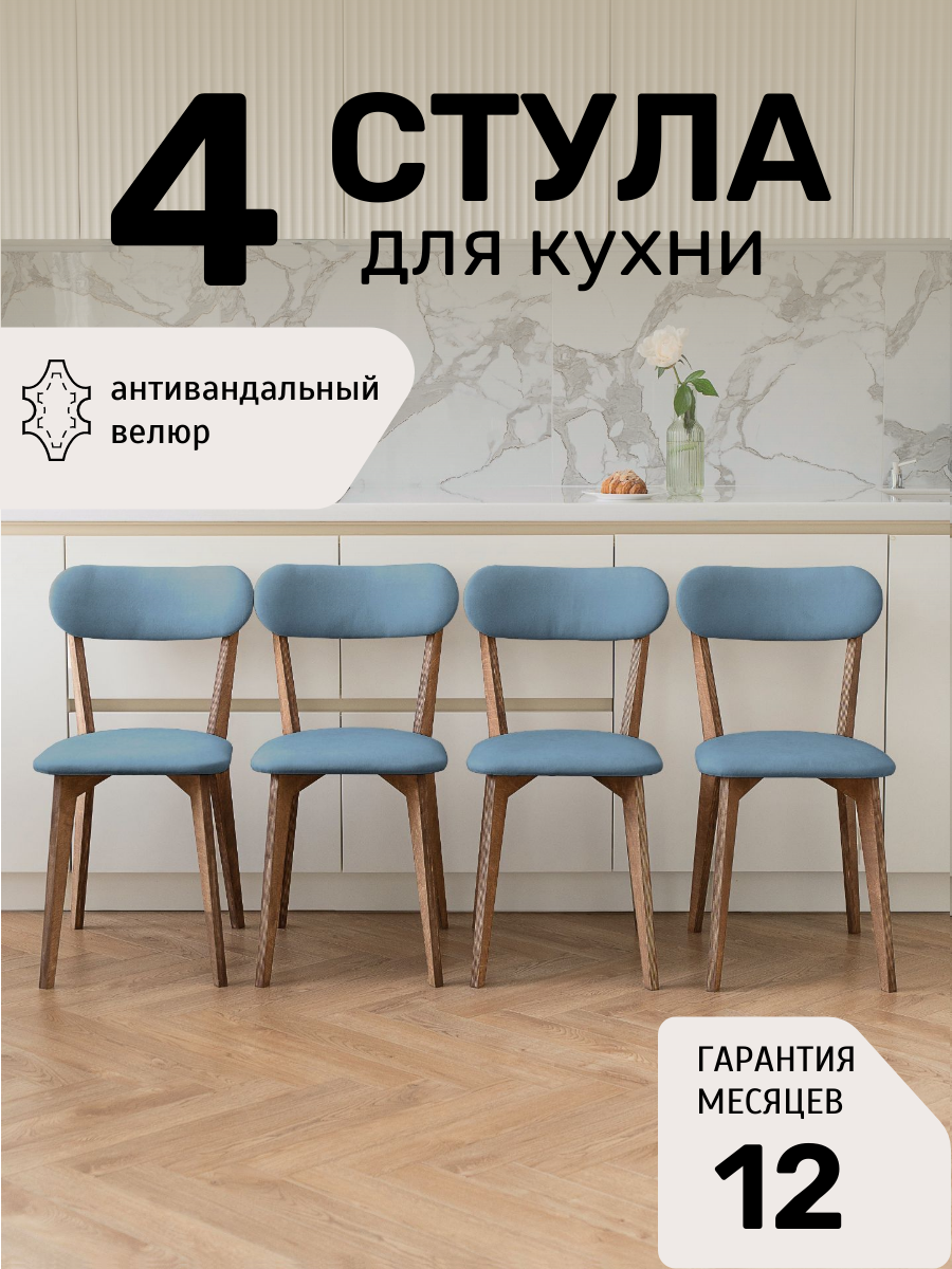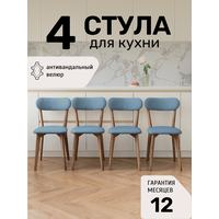 Стулья для кухни SAYMAN 4 шт, деревянные со спинкой, Голубой велюр: сравнение цен, характеристики, фото, актуальное наличие и цены.