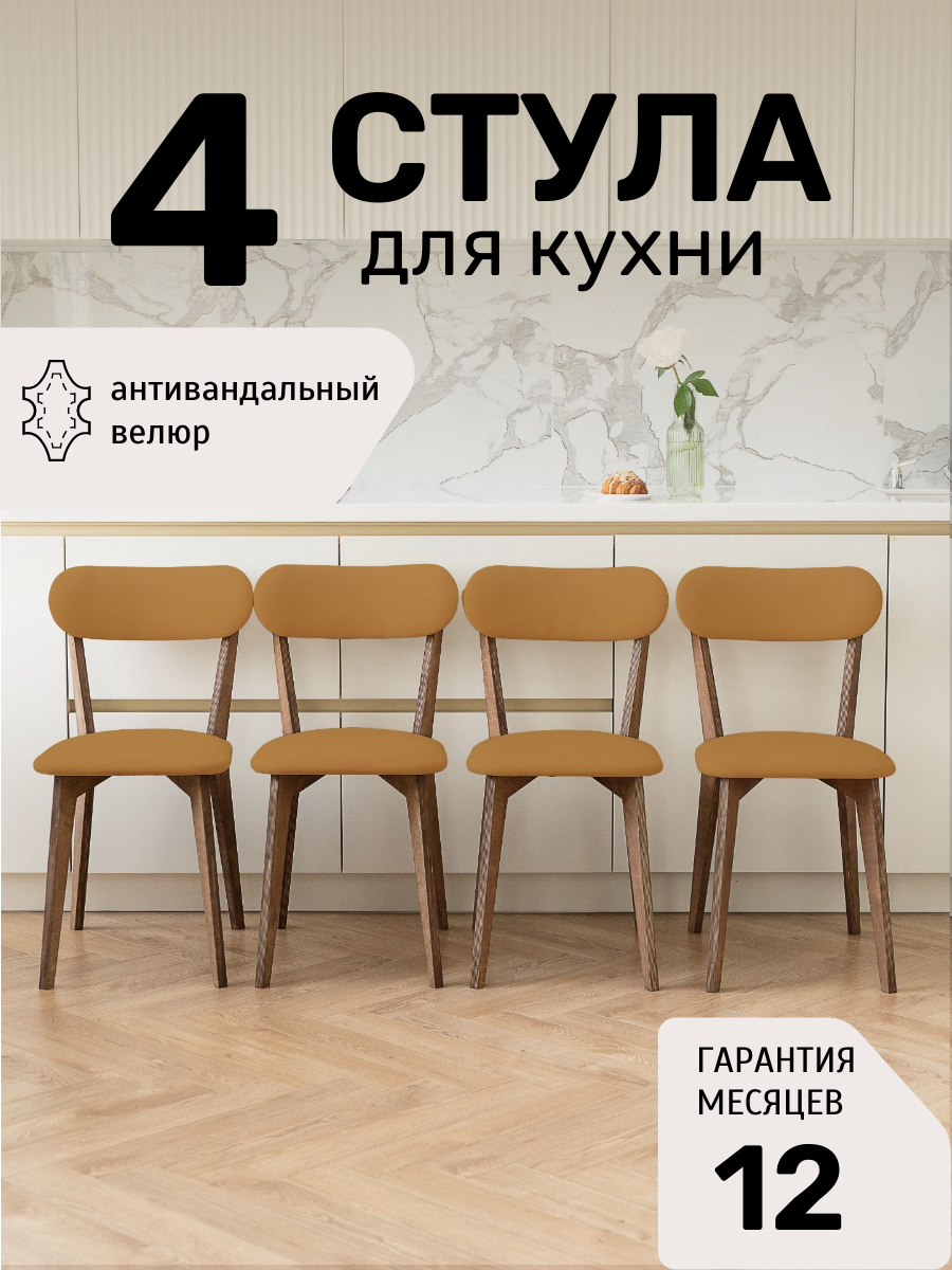 Стулья для кухни SAYMAN 4 шт, деревянные со спинкой, Горчичный велюр: сравнение цен, характеристики, фото, актуальное наличие и цены.