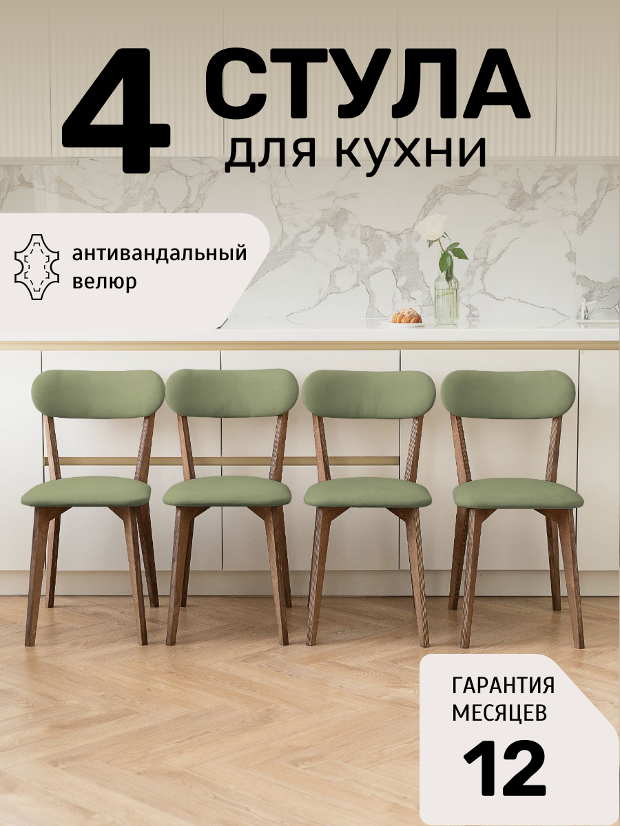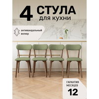 Купить Стулья для кухни SAYMAN 4 шт, деревянные со спинкой, Светло-зеленый велюр с доставкой по всей России.