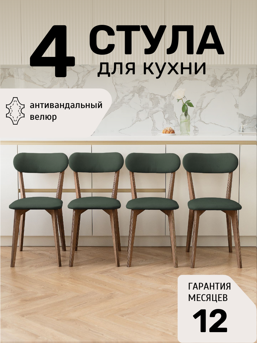 Купить Стулья для кухни SAYMAN 4 шт, деревянные со спинкой, Темно-зеленый велюр с доставкой по всей России.