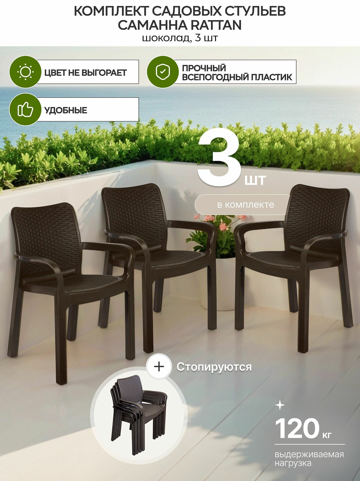 Стулья для сада Саманна Rattan, шоколад, комплект из 3-х штук: сравнение цен, характеристики, фото, актуальное наличие и цены.