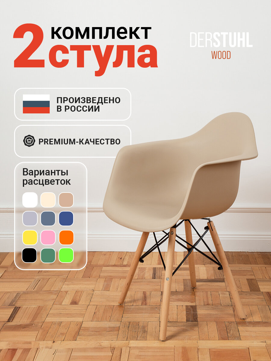 Купить Стулья кресла для кухни пластиковые со спинкой комплект 2 шт, темно-бежевый с доставкой по всей России.