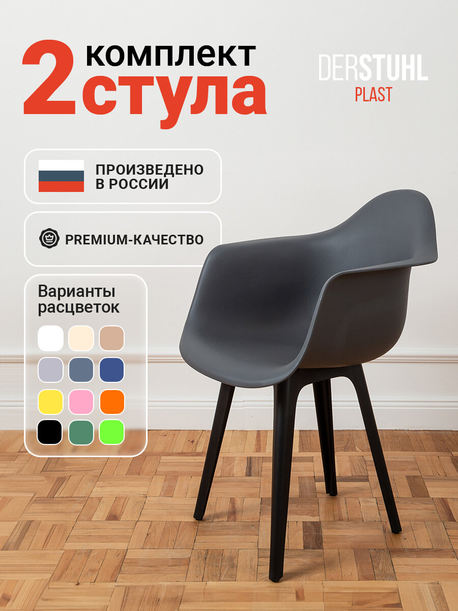 Купить Стулья кресла для кухни пластиковые со спинкой комплект 2 шт, темно-серый с доставкой по всей России.