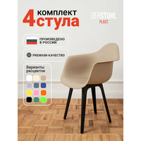 Стулья кресла для кухни пластиковые со спинкой комплект 4 шт, темно-бежевый