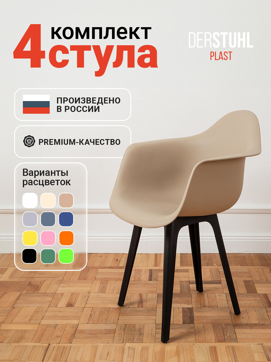 Купить Стулья кресла для кухни пластиковые со спинкой комплект 4 шт, темно-бежевый с доставкой по всей России.