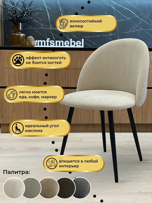 Стулья кухонные Логан велюровые, бежевые, комплект из 2 штук: сравнение цен, характеристики, фото, актуальное наличие и цены.