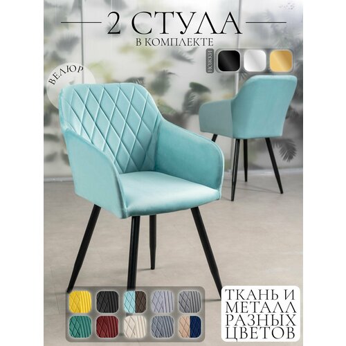 Стулья кухонные со спинкой Grande комплект 2 шт, цвет бирюзовый, черные ножки, узор ромбы: сравнение цен, характеристики, фото, актуальное наличие и цены.
