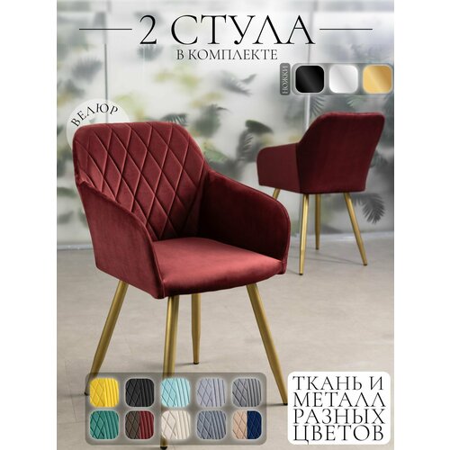Стулья кухонные со спинкой Grande комплект 2 шт, цвет бордовый, золотистые ножки, узор ромбы: сравнение цен, характеристики, фото, актуальное наличие и цены.