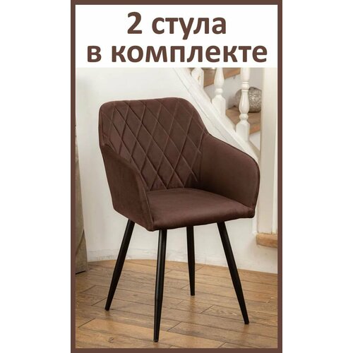 Стулья кухонные со спинкой Grande комплект 2 шт, цвет коричневый джинс, черные ножки, узор ромбы: сравнение цен, характеристики, фото, актуальное наличие и цены.