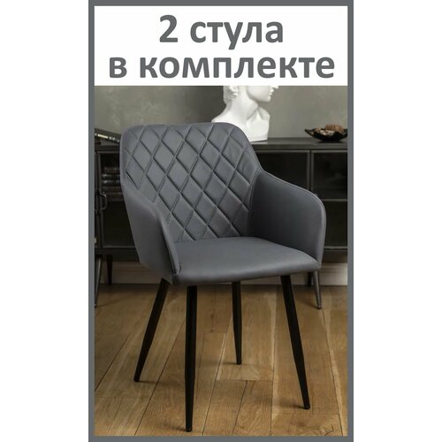 Стулья кухонные со спинкой Grande комплект 2 шт, цвет серый велюр под кожу, черные ножки, узор ромбы: сравнение цен, характеристики, фото, актуальное наличие и цены.