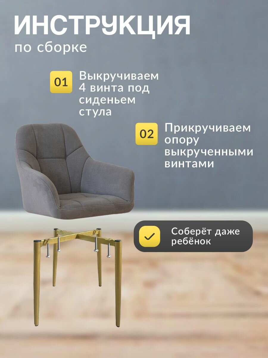 | Подробная комплектация | стул мягкий -1 шт; ножки металлические -1 шт; комплект фурнитуры;инструкция по сборке |