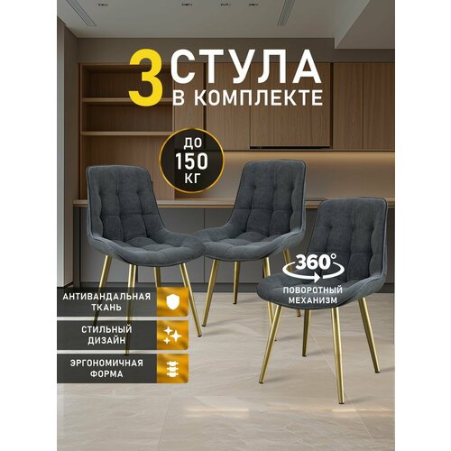 Стулья МК Stella President 3 шт. для кухни, с поворотным механизмом, велюровые: сравнение цен, характеристики, фото, актуальное наличие и цены.