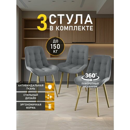 Стулья МК Stella President 3 шт. для кухни, с поворотным механизмом, велюровые: сравнение цен, характеристики, фото, актуальное наличие и цены.