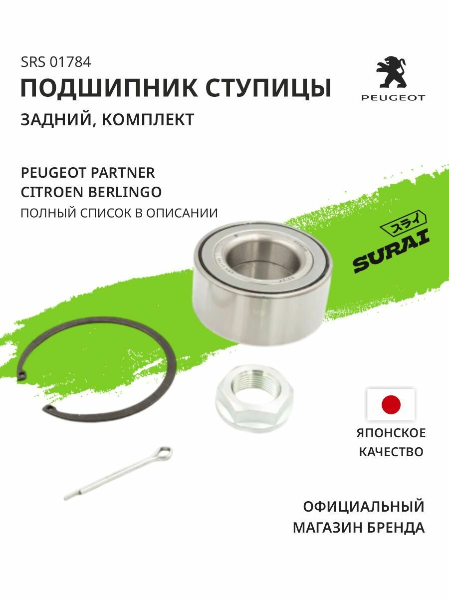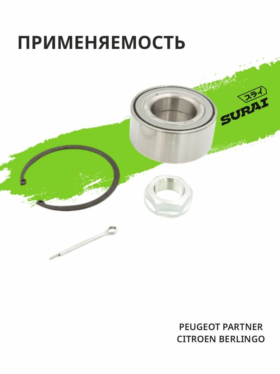 Ступичный подшипник SURAI для Citroen Berlingo, Peugeot Partner передний, комплект (SRS 01784, аналог SKF VKBA915, подшипник ступицы): сравнение цен, характеристики, фото, актуальное наличие и цены.