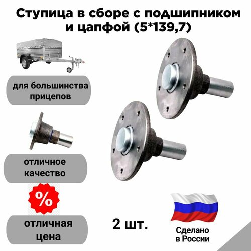 Ступица в сборе с подшипником и цапфой для колес с разболтовкой 5*139,7 для прицепа подходит для большинства прицепов представленных на российском рынке: "ССТ", "МЗСА", "САЗ", "Спутник", "Русич", "Трейлер", "Курганские прицепы", "Экспедиция", "Прогресс", "КМЗ"