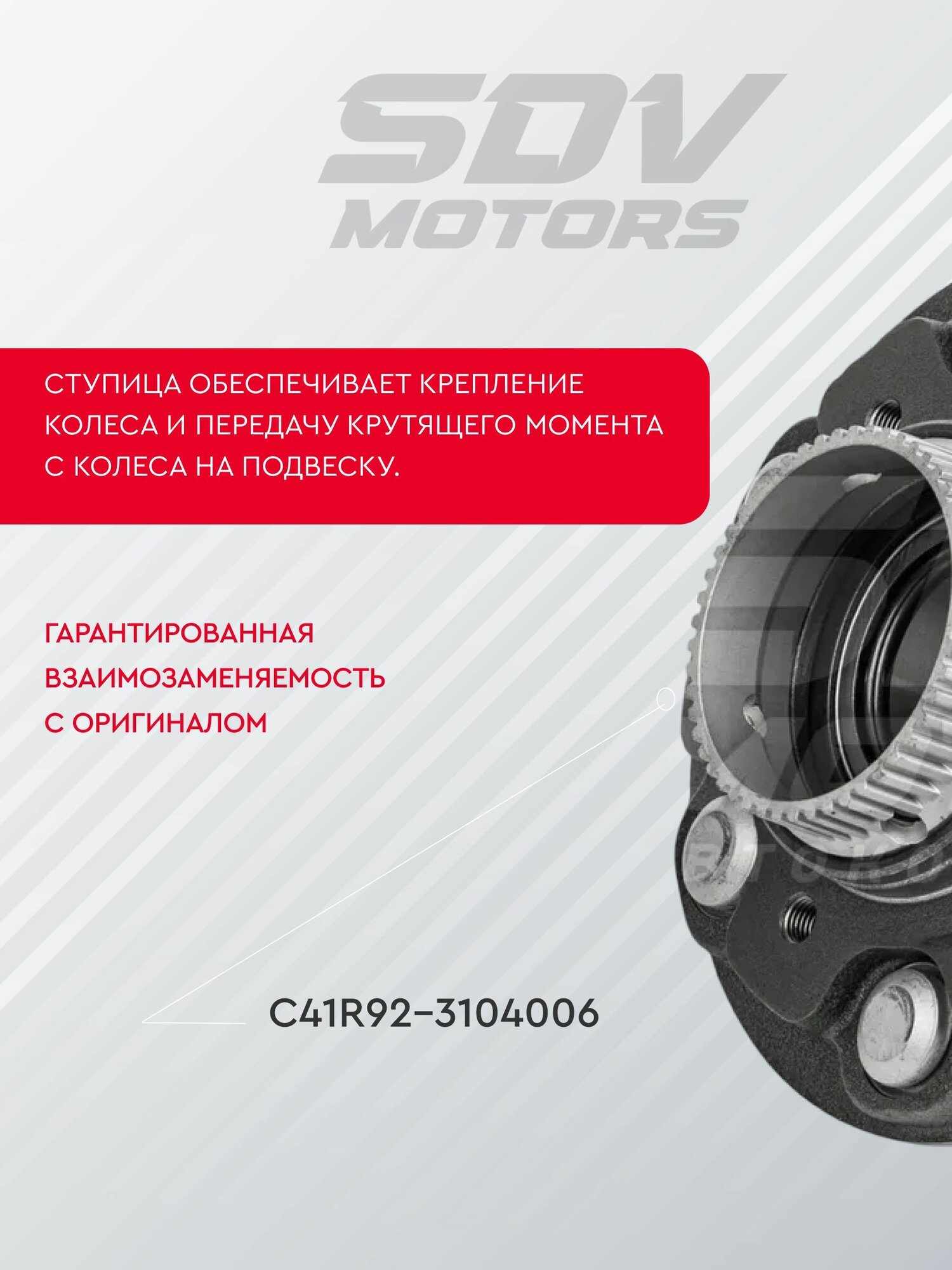Если вы ищете надежные автозапчасти для своего автомобиля Газель Next 4,6 тонн, ступица заднего колеса C41R92-3104006 от производителя SDV Motors станет отличным выбором. Эта ступица заднего колеса с АБС с подшипником и шпильками разработана специально для моделей Газель Next первого поколения, выпущенных с 2012 года, включая модели A2, A3 и A6.