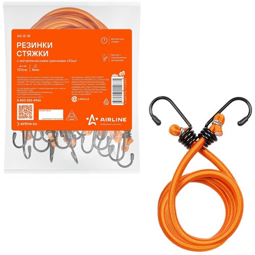 Резинки-стяжки набор 10 шт. 120 см, D-8 мм (металлические крючки) Описание: Эластичные резинки предназначены для крепления груза в автомобиле или любом другом месте. Фиксация резинок производится с помощью металлических крючков с пластиковыми наконечниками. В комплекте 10 шт. Характеристики: Артикул: AS-R-18 Размер: 120 см, D-8 мм Крепление: металлические крючки Комплектация: Резинки-стяжки набор с металлическими крючками - 10 шт. Пакет с навершием - 1 шт. Гарантия: от 1 года.