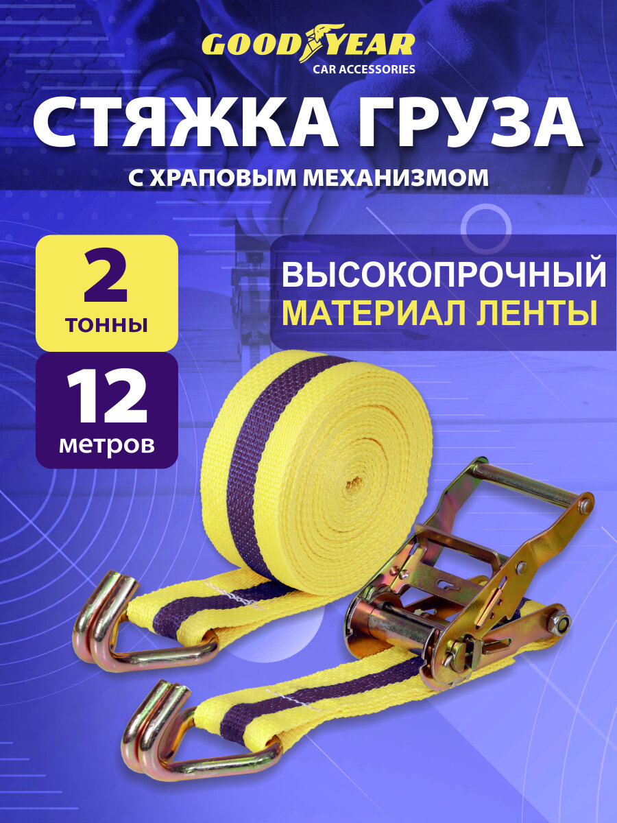 Стяжка груза Goodyear, с храповиком, для легковых/грузовых авто, 2т, жёлто-синяя: сравнение цен, характеристики, фото, актуальное наличие и цены.