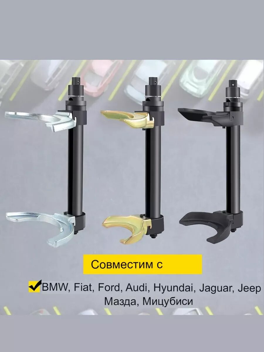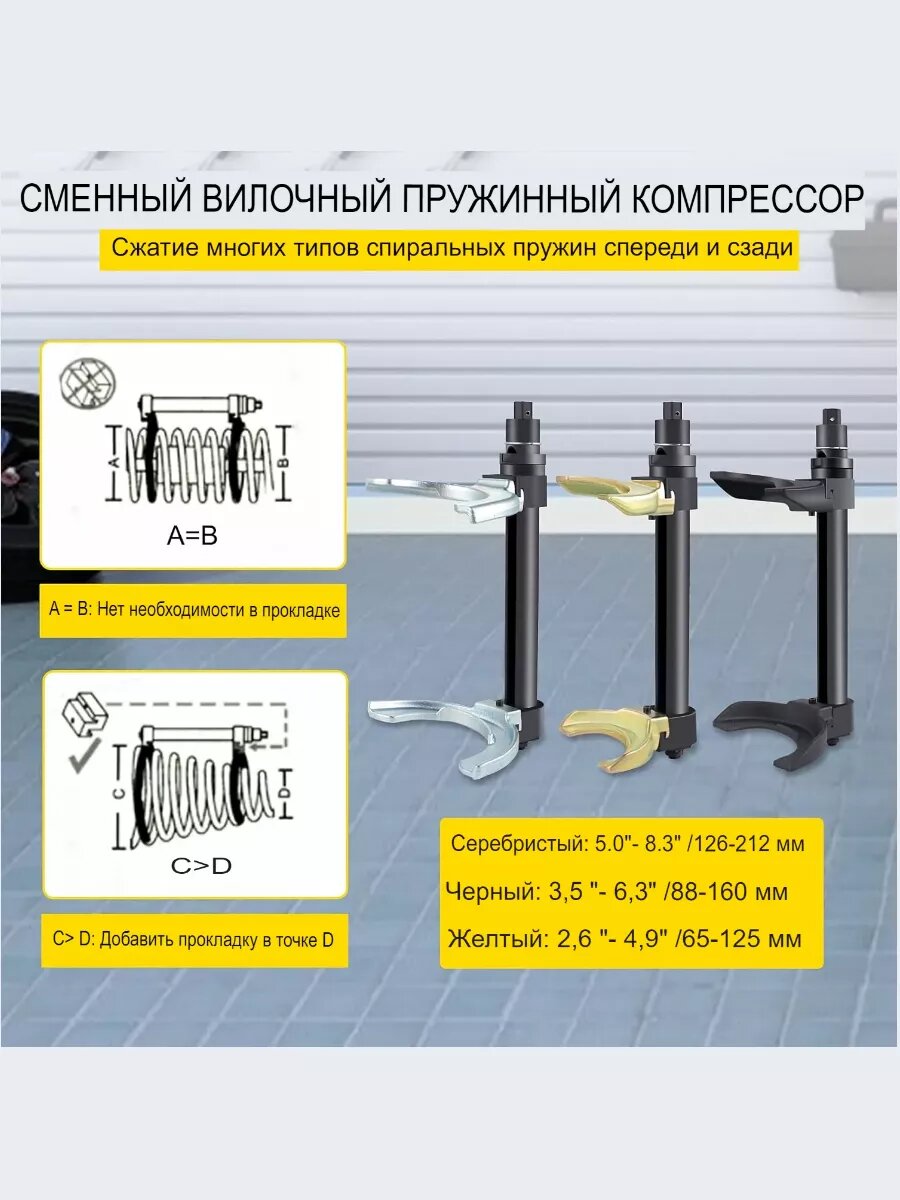 Профессиональный автоматический инструмент: Съемник пружинной стойки всегда используется для сборки и разборки пружин амортизатора. Комплект компрессора пружинной вилки окажет большую помощь, если вам нужно заменить изношенные опорные стержни, сломанные пружины или обновить пружины для улучшения внешнего вида и эксплуатации. Полный комплект губок: Три комплекта вариантов конфигурации могут использоваться для пружин амортизатора 5,0-8,3 дюйма (126-212 мм), 3,5-6,3 дюйма (88-160 мм), 2,6-4,9 дюйма (65-125 мм), а одна шайба подходит для пружин большинства размеров, представленных на рынке. Превосходное качество: Изготовлен из высококачественной прочной стали с прочной конструкцией, что делает съемник со стойкой более прочным и долговечным. Губки с защитным выступом фиксируют пружину на месте во время сжатия и предохраняют оператора от опасности. Удобное хранение: В комплекте 1 стержень, 3 пары сменных хомутов, 1 регулировочная прокладка, 6 штук крепежных болтов. И один кейс для удобной переноски и хранения. Простота в использовании: вам нужно выбрать два хомута, соответствующие соответствующим пружинам, затем закрепить их на штоке сжатия прилагаемыми винтами, а затем с помощью гаечного ключа, храповика или ударного ключа поворачивать ходовой винт до полного натяжения пружины.