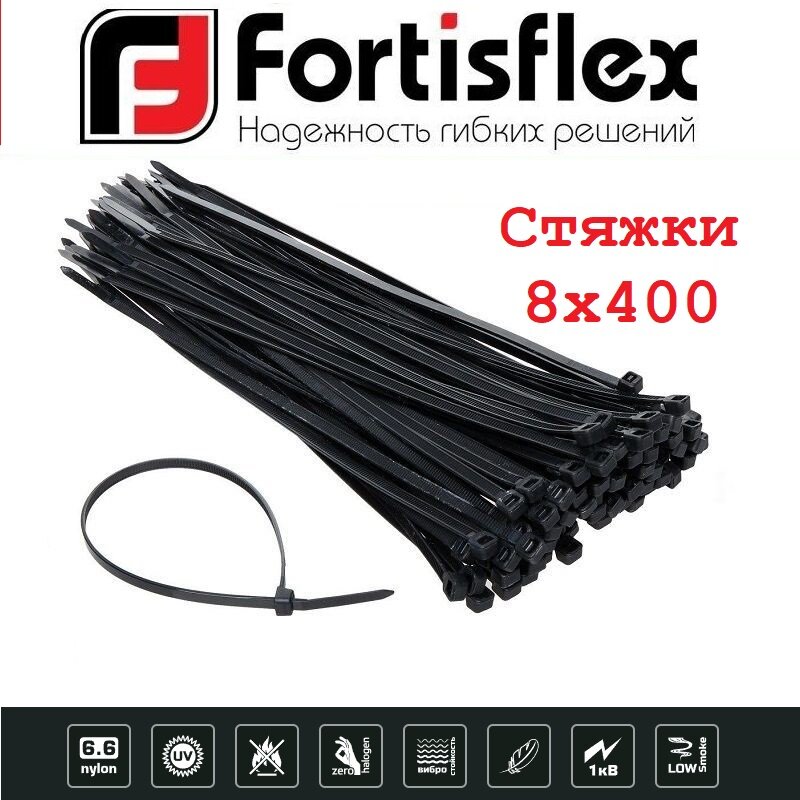 Стяжки / хомуты пластиковые кабельные, нейлон, 8х400, черные100шт Fortisflex: сравнение цен, характеристики, фото, актуальное наличие и цены.