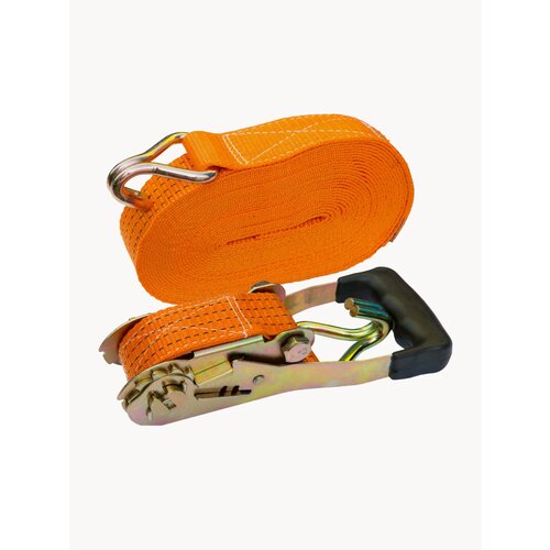 Прочность и надежность крепления обеспечивается благодаря использованию стяжного ремня с натяжным устройством. В комплект входят текстильная лента длиной 10 метров, два крюка (шакла) и один натяжной храповый замок.