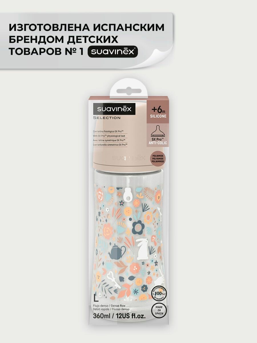 Suavinex Бутылочка для кормления 360 мл. с соской 6м+ (быстрый поток), поильник с противоколиковым клапаном: сравнение цен, характеристики, фото, актуальное наличие и цены.