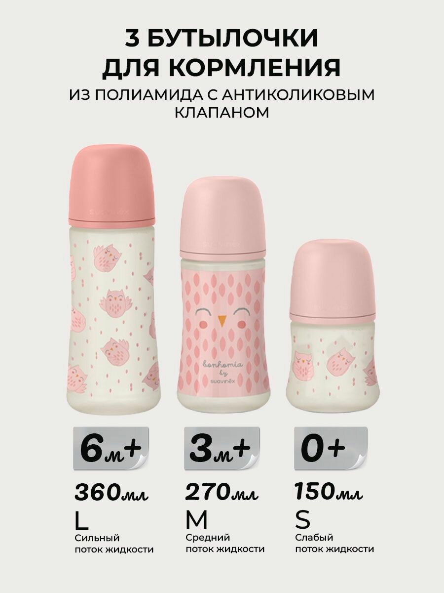 Suavinex подарочный набор для новорожденного из 7 предметов: три бутылочки для кормления, соска-пустышка, зажим для пустышки, держатель для пустышки, контейнер для смеси