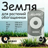 Почвенная смесь All-Mix обеспечит растений всем необходимым на протяжении всего цикла. Вам остается, лишь, посадить растение. Почвенная смесь All-Mix состоит из верхового торфа, низового торфа, волокнистого торфа (всего 20%) , перлит (30%), биогумус (10%), гуано, известь как источник кальция и магния. Содержит высокую концентрацию микоризы. В качестве добавленного удобрения использовано 5% BioBizz Pre-Mix.