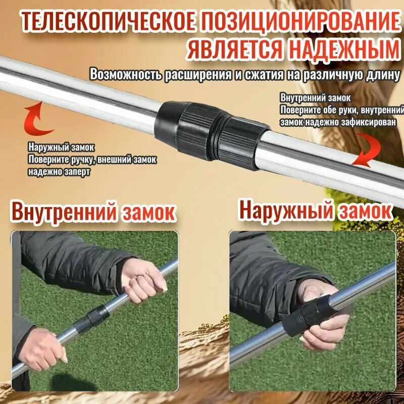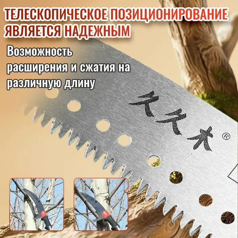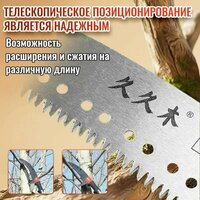 Ножовка садовая телескопическаяТелескопическая садовая ножовка с 5-метровым телескопическим шестом для обрезки веток на высоте. Вращающийся телескопический шестПрактичный и удобный в работе