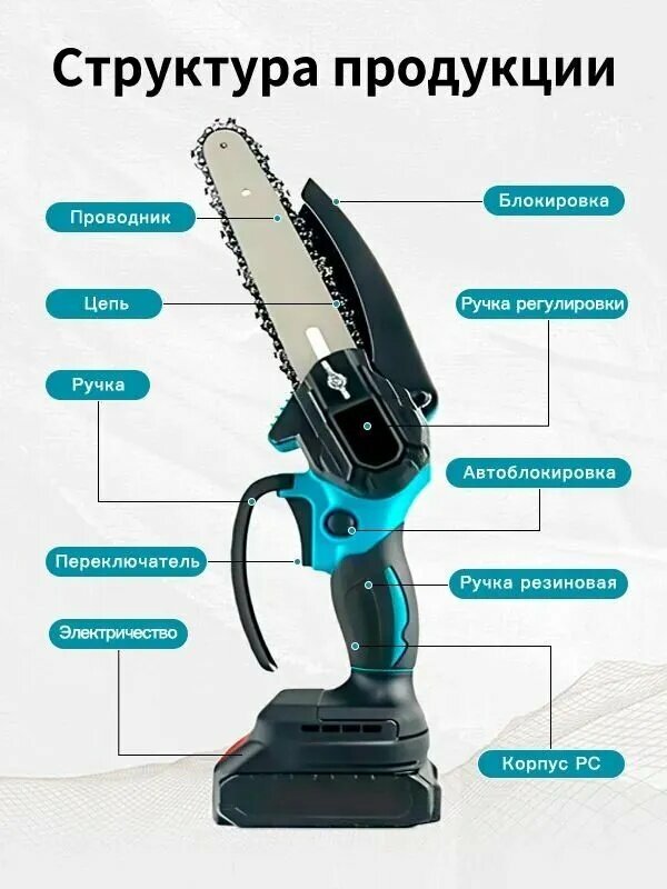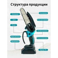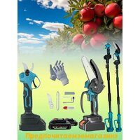 КомплектацияСекатор*1, 6-дюймовая пила с насосным маслом*1, 1,7-метровый удлинитель*1, Аккумулятор*2, еврозарядное устройство*1, Запасное лезвие*1, Запасная цепь*1, Инструкция по эксплуатации*1, Запчасти *1 Упаковочная коробка *1