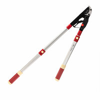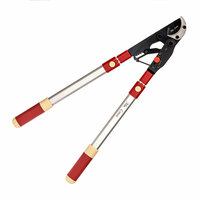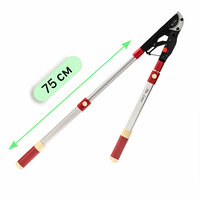 Храповый механизм облегчает процесс срезания, разделяя его на несколько частей. Во время сведения рукояток острая лопасть входит в древесину до определённого уровня. Состояние ножа сохраняется, ручки возвращаются в начальное положение. При дальнейшем их сведении остриё продвигается вглубь. Повторять действие необходимо до момента касания острия упора, то есть полного рассечения ствола. Чем больше диаметр ветки, тем больше нажимов придётся выполнить. Данный способ позволяет работать с крупными и высохшими деревьями, прикладывая минимальное количество усилий. Раздвижные ручки удобны при уходе за густыми кустарниками и высокими деревьями. Увеличить длину устройства можно одним движением. Таким образом ощутимо повышается производительность - не нужно устанавливать лестницу и постоянно подниматься и спускаться. Особенно это актуально для больших садов.