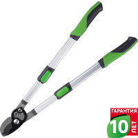 Сучкорез Geolia с телескопическими ручками оснащен алюминиевыми рукоятками длиной 50,9 см с возможностью фиксации вылета в шести позициях. Удлиняющиеся ручки увеличивают силу рычага и позволяют эффективно работать даже с толстыми ветвями диаметром свыше 40 см, а также доставать более высокие ветки. Снизу рукоятей предусмотрены пластиковые рифленые накладки, препятствующие скольжению сучкореза в руках. Рабочая часть — изогнутые стальные ножи с покрытием против налипания. В инструменте предусмотрена регулировка зева под необходимые условия реза. Гарантия производителя — 10 лет.