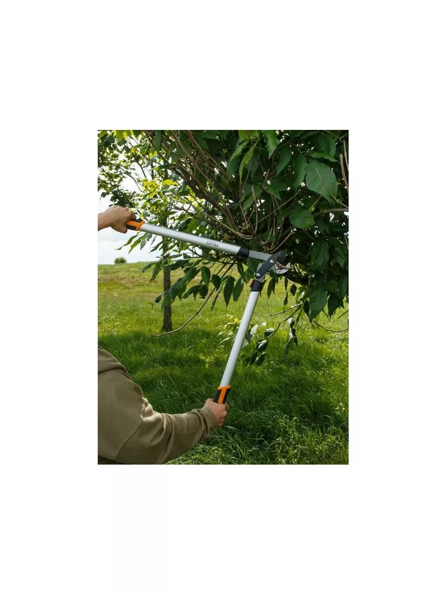 Рукоятки сучкореза выполнены из алюминия, что делает их легкими и прочными. Противоскользящее покрытие обеспечивает надежный хват и предотвращает случайное выскальзывание инструмента из рук.