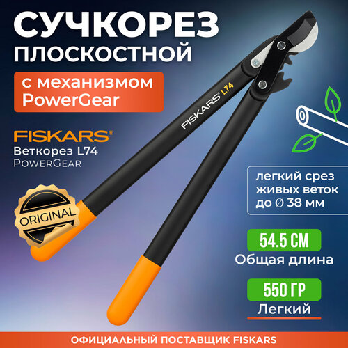 Сучкорез садовый FISKARS PowerGear L74 плоскостной с загнутыми лезвиями средний 1000582, длина 55 см: сравнение цен, характеристики, фото, актуальное наличие и цены.