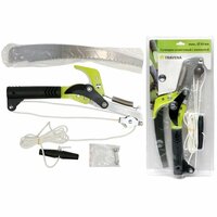 Инструмент можно использовать как для работы с невысокими, так и с разросшимися в высоту, растениями. Удобен для работы с ветками деревьев на высоте свыше 2-х метров. Лезвия из инструментальной нержавеющей стали обеспечивают ровный, чистый и легкий рез. Для эффективного реза рекомендуется использовать штангу (в комплект не входит). В комплект входи ножовка с длиной полотна 33 см. Особенности: - Универсальный храповый механизм (рез в несколько этапов); - Ножовка для подрезки кроны (в комплекте); - Полотно - высокоуглеродистая сталь с ANTISTICK покрытием; - Прочный натяжной трос (не перетирается длительное время).