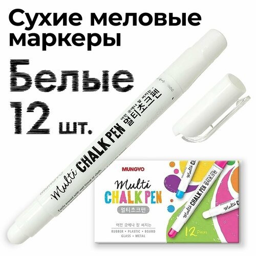 Набор из 12 сухих меловых маркеров Mungyo Multi Chalk Pen - пишут на любой поверхности! Белый цвет.